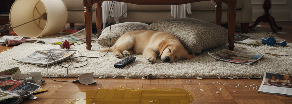 Abends hinterlegen Sie Ihre getragene Unterwäsche auf dem Boden des Wohnzimmers, weil der Welpe sie sowieso dorthin tragen wird (… dies besonders, wenn Sie Besuch haben werden …).