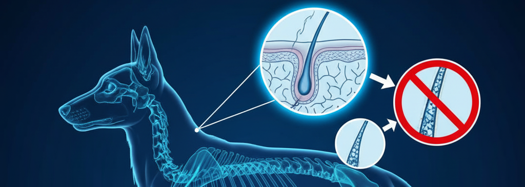 Futterumstellung, Gaben von Kortison und weitere entsprechende Maßnahmen zeigen keine, bis wenig dauernde Wirkung. Ein unschöner Kreislauf für Hund und Halter beginnt. Die Auswirkungen für die betroffenen Hunde sind teilweise extrem. Die Immunschwäche z. B. äußert sich dahin gehend, dass der betroffene Hund übermäßig anfällig für Infektionskrankheiten jeder Art ist und eigentlich harmlose Infekte einen unnatürlich heftigen Verlauf nehmen. Auch Allergien sowie Hautprobleme, Probleme mit der Fellqualität, Haarausfall (Alopezie), Ekzeme und schlecht verheilende Wunden gehören bei diesen Hunden häufig zum Alltag. Die einzelnen Krankheitsbilder haben meistens auch Auswirkungen auf das Verhalten dieser Hunde, ihre Konzentration und die gesamte Lebensqualität. Für einen Hund, bei dem sich Symptome zeigen, ist ein „normales“ Hundeleben nicht möglich! Ein versierter Tierarzt kann durch ein Trichogramm (Haaranalyse) einen ersten Verdacht eingrenzen. Endgültige Sicherheit bringt jedoch nur eine histologisch untersuchte Biopsie der betroffenen Hautstellen.