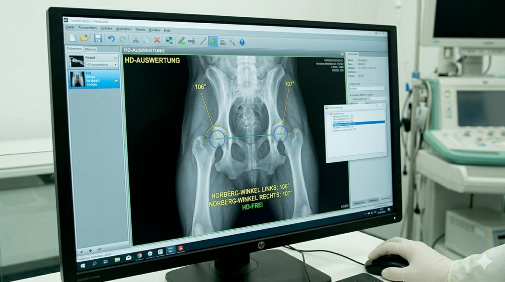 Voraussetzung für ein objektiv auswertbares Röntgenbild ist eine korrekte Lagerung des Hundes sowie eine optimale Röntgentechnik. Hierzu bedarf es auch einer gewissen Routine, Erfahrung und Kenntnis des röntgenden Tierarztes.