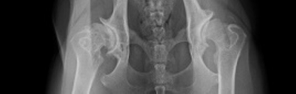 Auffällige Veränderungen an den Hüftgelenken (beispielsweise Teilverrenkungen), Norberg-Winkel unter 90°, der Pfannenrand ist deutlich abgeflacht. Es kommt zu verschiedenen arthrotischen Veränderungen.