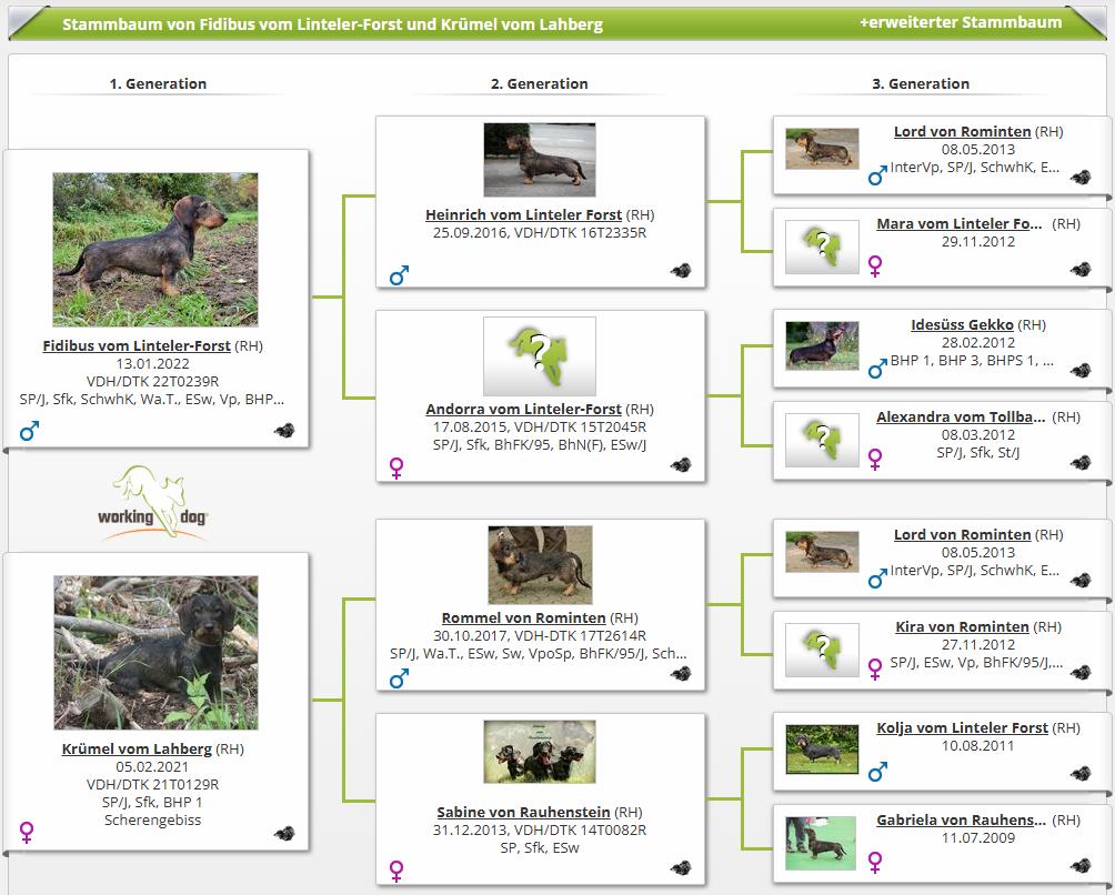 Bei dieser Verbindung liegt unser Augenmerk ganz besonders auf der jagdlichen Leistung und der kompromisslosen Gesundheit beider Elterntiere, denn wir züchten Rauhhaarteckel vom Jäger für Jäger.