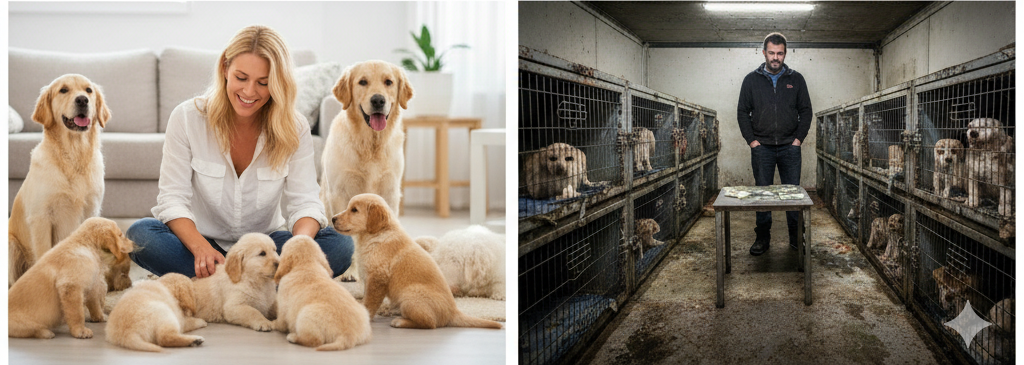 Hunde zum „Schnäppchenpreis“ besitzen selten Papiere eines anerkannten Hundeverbandes. Die Welpen stammen meist von Hinterhof-Vermehrern oder aus illegalen Auslands-Importen. Es wurde bei der Verpaarung der Elterntiere keinerlei Wert auf Gesundheit, Wesensfestigkeit, Sozialisation und andere züchterische Aspekte gelegt. Die Mutterhündin wird meist in katastrophalen hygienischen Umständen gehalten und fristet ihr trauriges Leben als Welpen-Wurfmaschinen; ihre Welpen werden weder entwurmt noch geimpft.