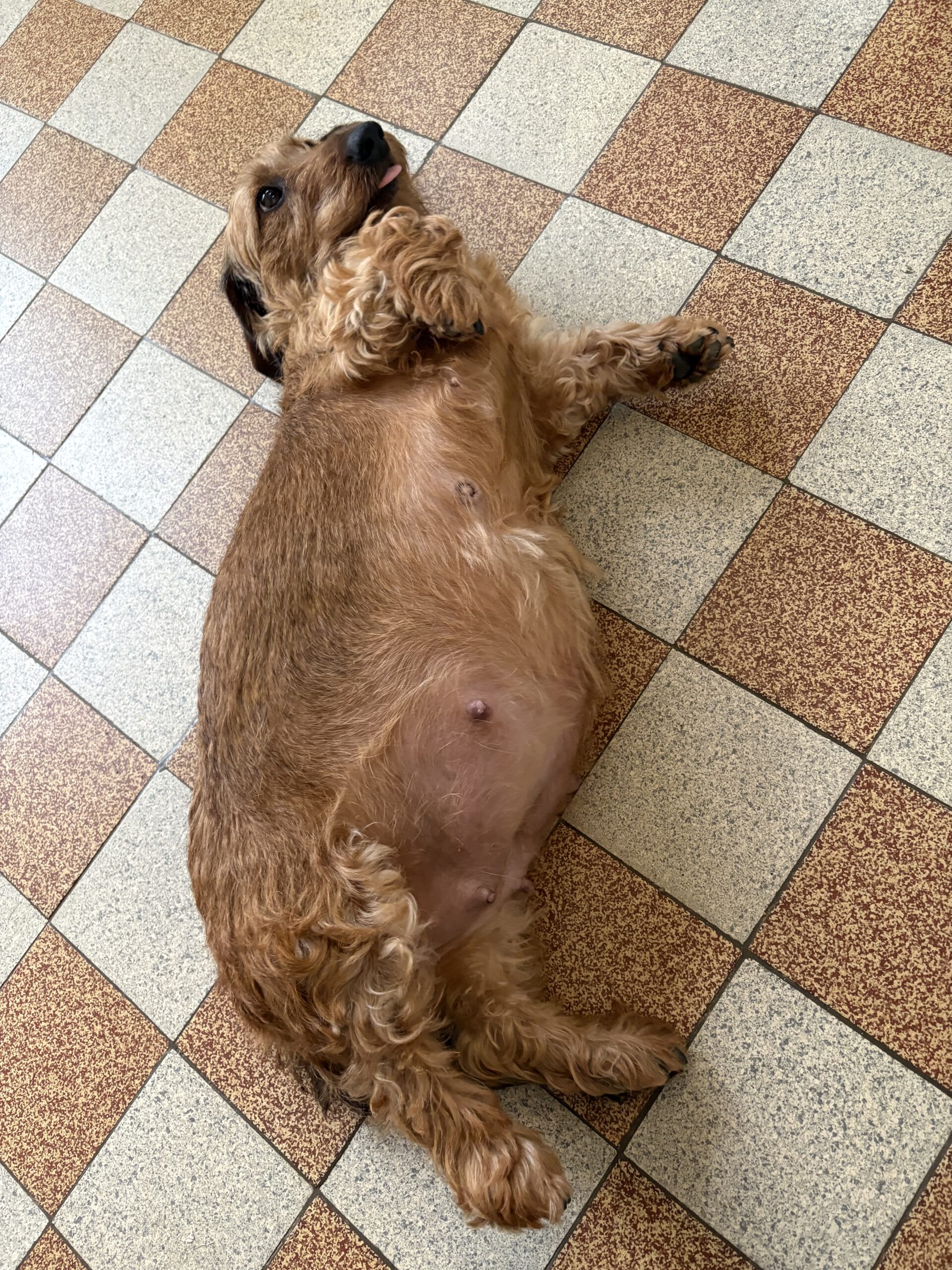 | Fr, 10.10.2025 | Das Laufen fällt mir schwer, ich weiß nicht wie ich liegen soll und aufstehen ist sowieso ein besonderer „Akt“. Mein Bauch wird immer dicker… das Putzen und Zusammenrollen wird auch immer schwieriger. Naja bald ist es ja soweit 🙂Die Runden werden immer kürzer. „Im Alter verträgt man die Hitze nicht mehr so gut“…sagt Frauchen, die muss es ja wissen hi, hi. Das Futter schmeckt auch nicht mehr so richtig! Wo soll das noch hinführen? Mein Wurfzimmer ist fertig. „Probeliegen“ mache ich jetzt auch jeden Tag, meine Wäsche ist gewaschen und gut verpackt…..also… von mir aus könnte es losgehen!Armin und Ulrike sagen, dass ich es bis nächstes Wochenende geschafft habe. Aber dann geht der Stress eigentlich erst los. Ich mag Armin nicht mehr! Zweimal am Tag kontrolliert er mit einem Fieberthermometer meine Körpertemperatur… furchtbar! Aber dabei gibt es immer kleine Leckerbissen- das macht das Messen nur noch halb so schlimm. |