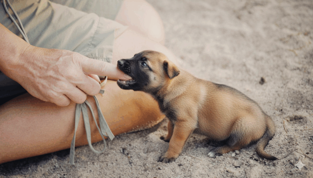 Was frischgebackene Welpenbesitzer schier zur Verzweiflung treiben kann, ist zunächst einmal ganz normales Welpenverhalten: Hundekinder erkunden, da keine Hände vorhanden sind, die Welt mit dem Mund. Und mit den Zähnen. Außerdem wird gerne gespielt und dazu gehören auch Raufspiele. Dass der andere das nicht immer lustig findet und den Menschen dabei wehgetan wird, wenn zu wild getobt wird, muss erst gelernt werden.