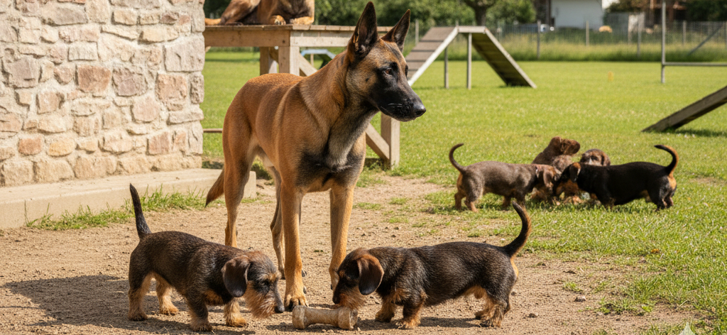 Wir haben uns für Teckel und für Malinois entschieden, da diese Hunde ohne Übertreibungen für uns perfekt sind, d. h. das äußeres Erscheinungsbild ist einfach, zweckorientiert und gebrauchsfähig.
