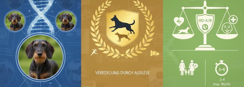Ein wesentlicher Faktor in der seriösen Zucht ist die Erkenntnis, dass wir immer in Generationen denken müssen. Die einfache Annahme, dass Gleiches zwangsläufig Gleiches erzeugt, ist ein Trugschluss, der in der Genetik zu bösen Überraschungen führen kann. Als Züchter arbeiten wir mit der komplexen Verbindung und Wiederverbindung von vielen hundert Genen. Dies erfordert eine umfassende Recherche und ein tiefes Verständnis für die genetische Historie unserer Tiere.
